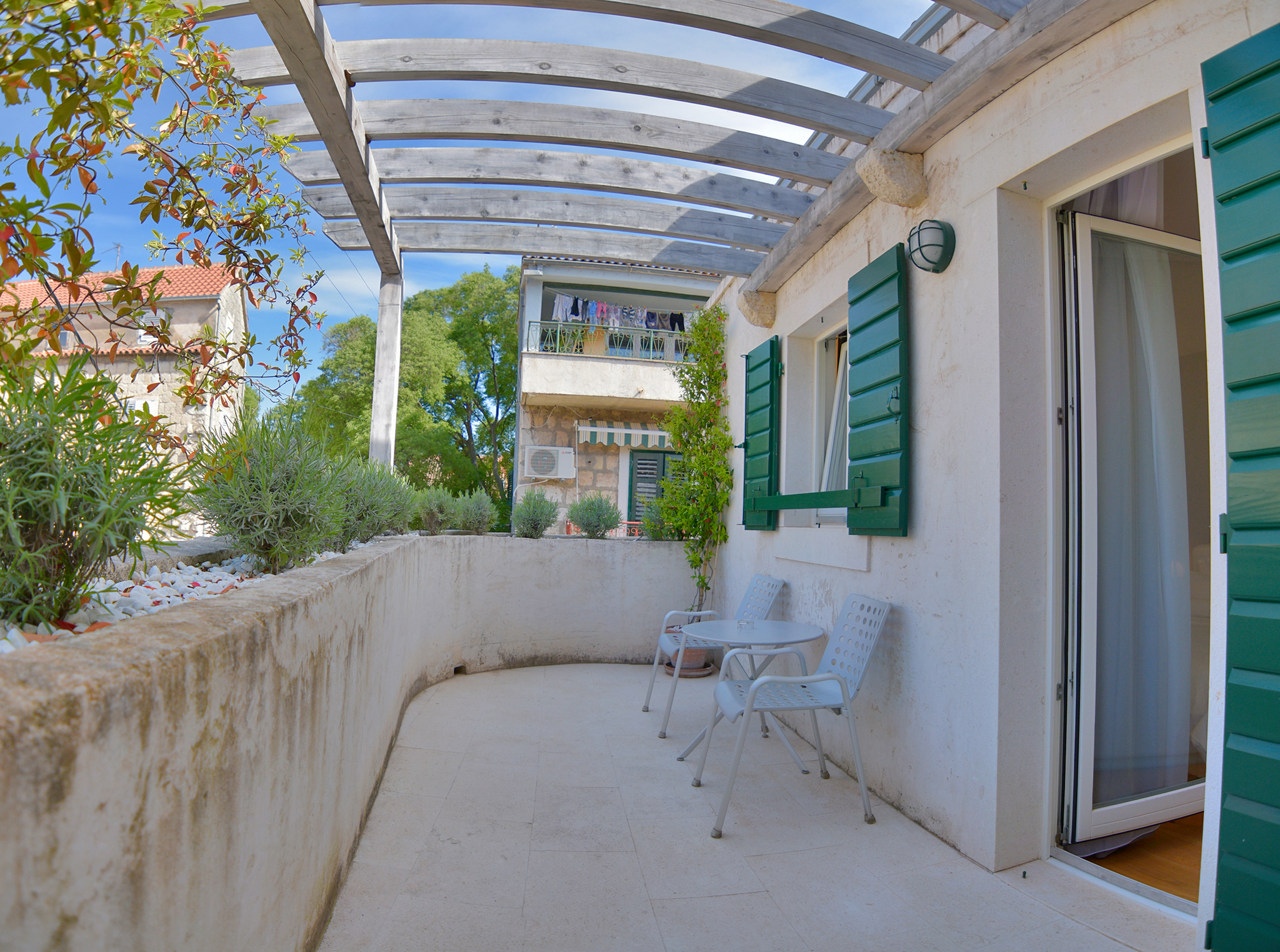 DetailsSecond-floor comfort room in a traditional Dalmatian house, with a private balcony and exclusive access to a serene guests-only lounge.